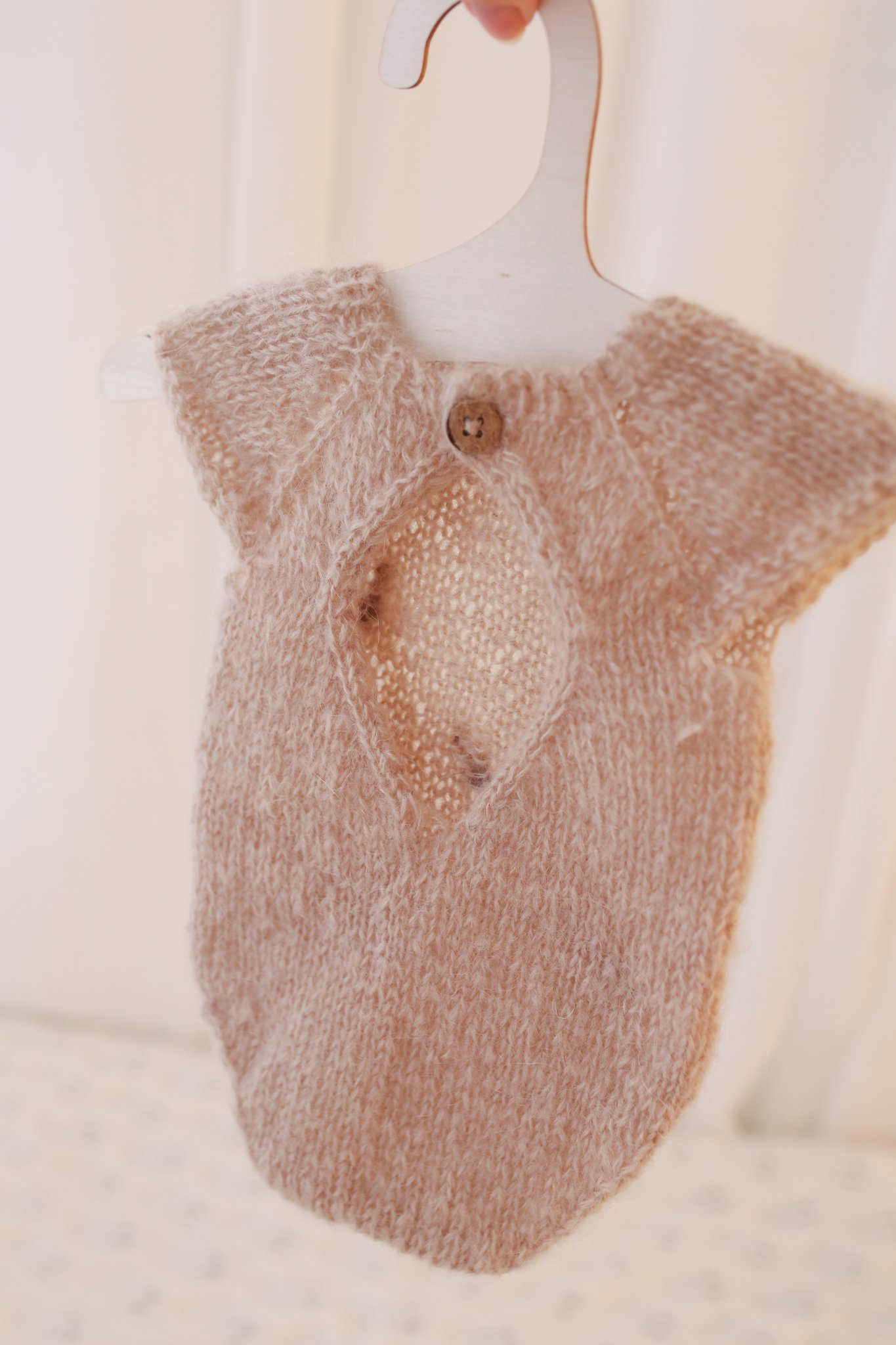 Penny Knit Romper bow beige with tieback